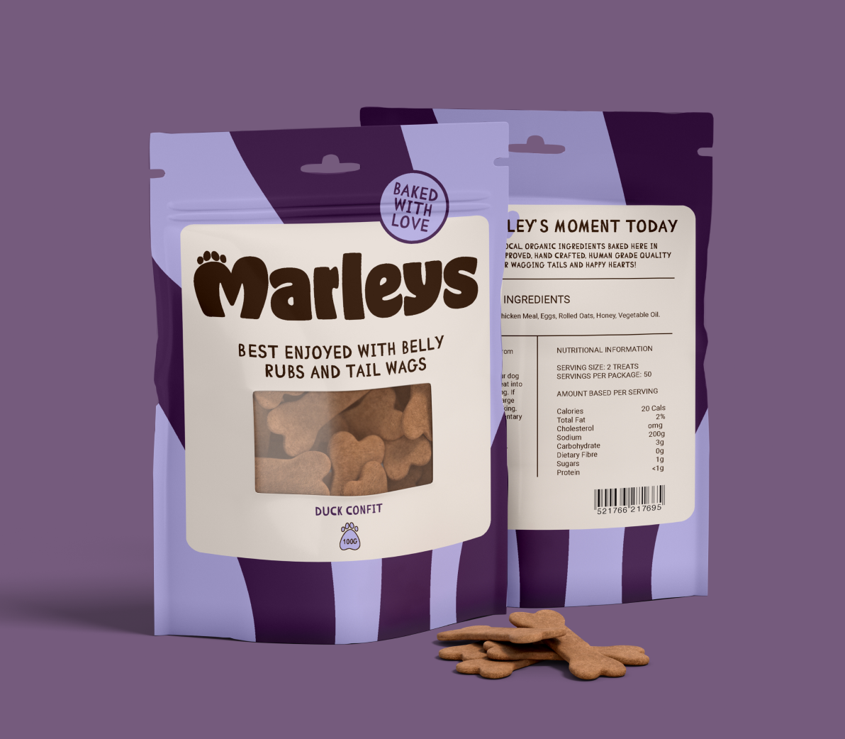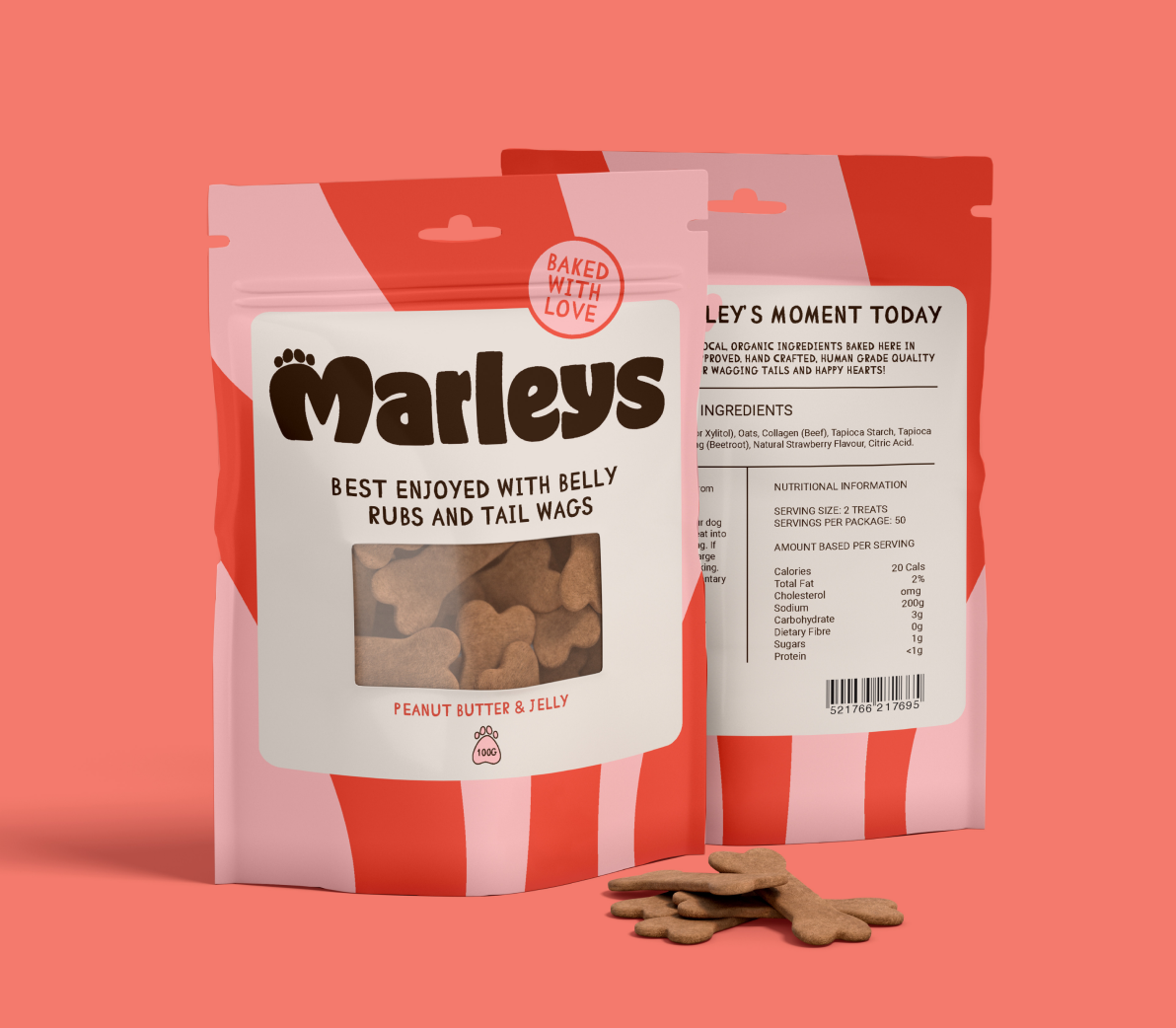 A branding project for Marleys, a nostalgic dog treat brand that celebrates the special bond between pets and their owners. Rooted in the joy of shared moments, Marley’s treats symbolise love, connection, and the simple pleasures of life with your furry friend.
